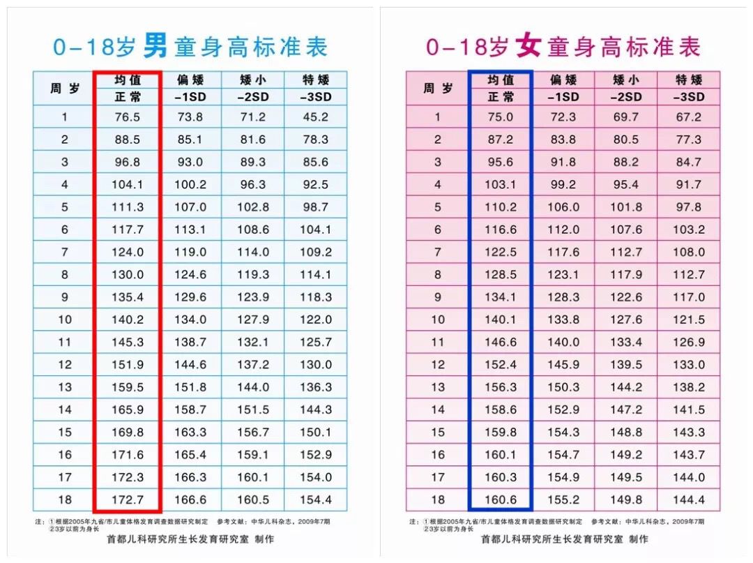 兒童身高體重標(biāo)準(zhǔn)表